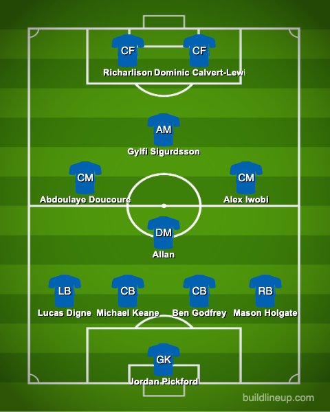 With James Rodriguez unlikely to feature, Ancelotti could rotate Andre Gomes out and bring in Gylfi Sigurdsson, with the Iceland international having registered two assists in his last two games.