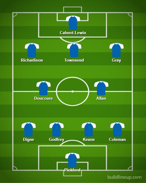 Townsend, who usually prefers to play out wide could be moved to a number 10 position with Richarlison and Gray playing on either side.
