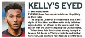 Everton want to sign Bournemouth’s English defender Lloyd Kelly in January, according to The Sunday Mirror (09/01/2022).