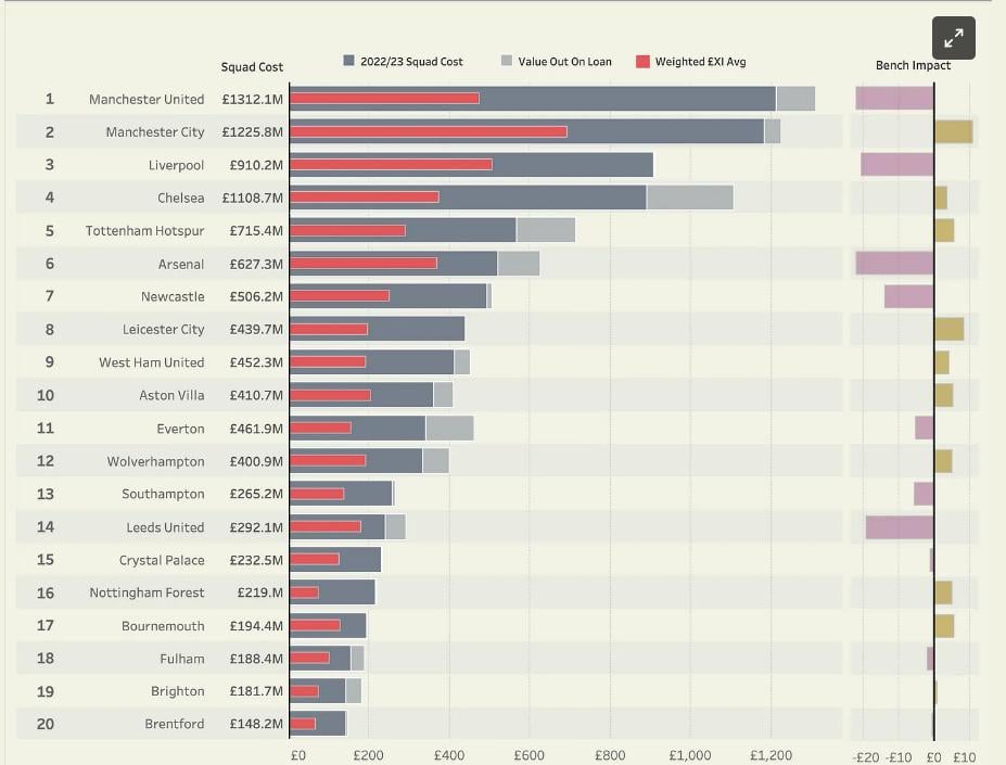 Everton reportedly have the 11th most expensive squad in the Premier League, narrowly missing out on the top 10.