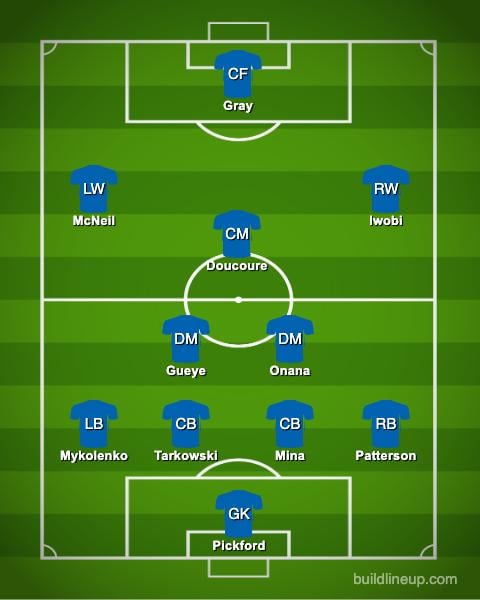 Vitalii Mykolenko missed the loss to Man City with an injury and the team will be hopeful he is able to come back in. If he’s fit he will start, meaning Mason Holgate will fall out of the team and back on to the bench.
