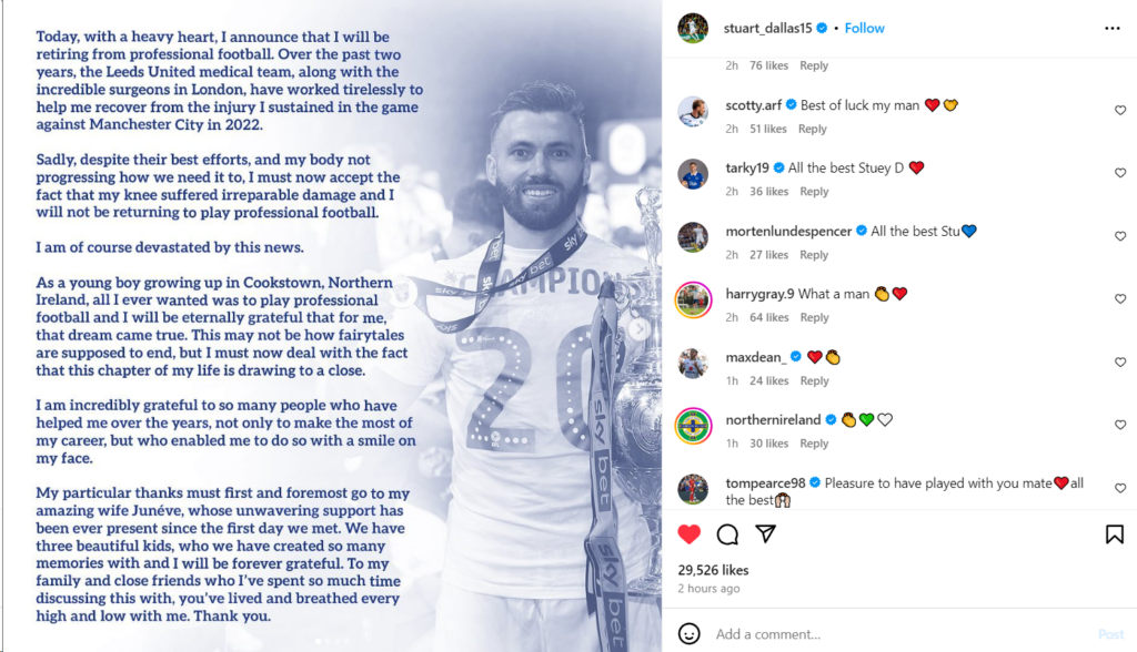Dallas’ journey from a relatively unknown player to a key figure in Leeds’ recent successes resonated deeply with fans, making him a beloved figure at the club.