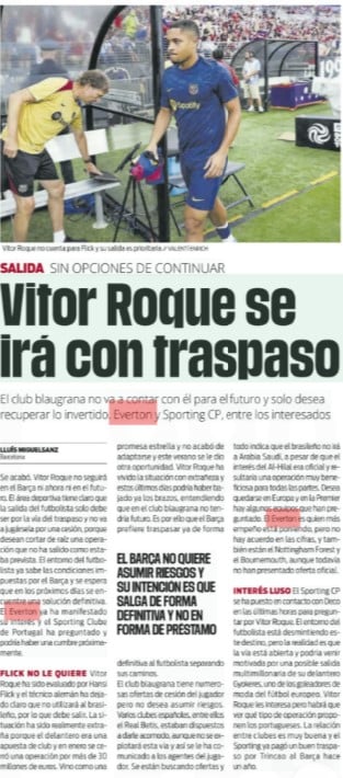 Barcelona manager Hansi Flick is 100 per cent open to Everton target Vitor Roque leaving Camp Nou before the end of the transfer window, according to Sport.