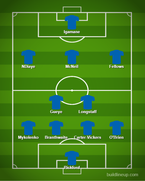Jake O’Brien and Vitalii Mykolenko could occupy to the two full back roles, with one change in the heart of the defence.