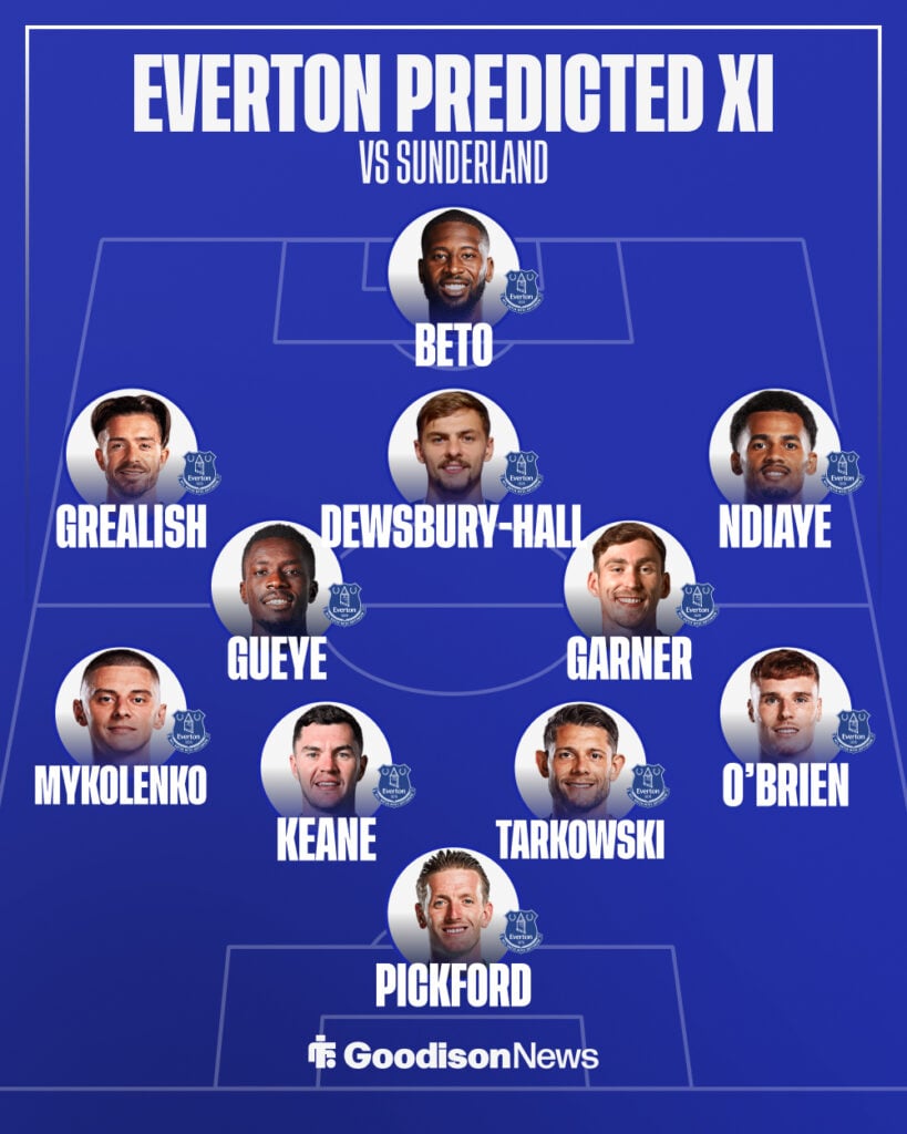 Everton predicted XI: Pickford; O’Brien, Tarkowski, Keane, Mykolenko; Garner, Gueye; Ndiaye, Dewsbury-Hall, Grealish; Beto