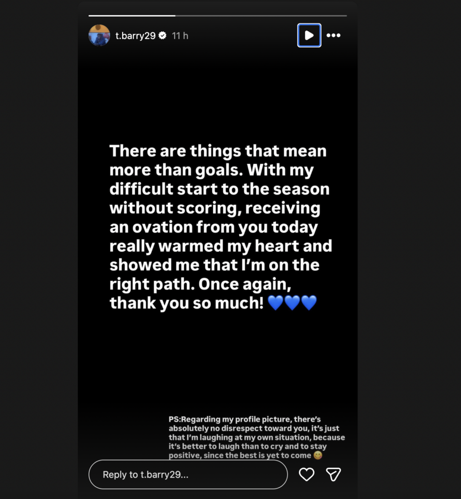 After the match, Barry took to social media to address Everton fans about his Instagram profile picture, saying he never meant to cause any possible anger.